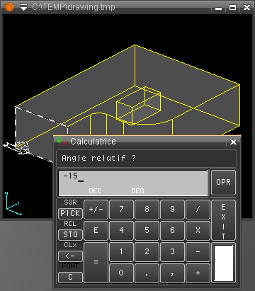 Après avoir validé la limitation avec SELECT, le système ouvre une calculette pour entrer la valeur de l'angle.