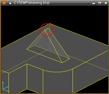 Activer la fonction Angle face (954), puis positionner le curseur sur la face à basculer et simultanément l'arête qui servira d'axe pour la rotation.