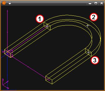 Si l'on entre trois points, un tuyau arrondi passant pas les trois points est généré.