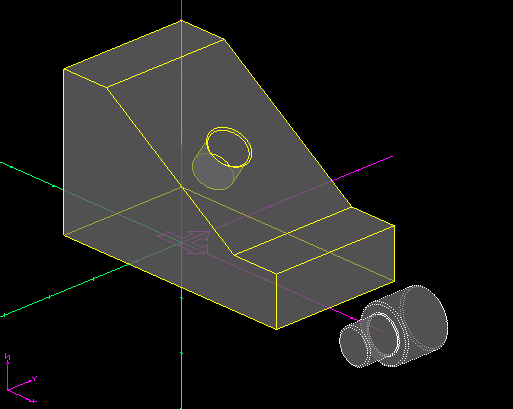 S'il l'objet n'était pas sélectionné au départ, le système demande à ce moment de définir la sélection. Sélectionner l'objet à déplacer (le tenon) puis valider avec la touche SELECT de la souris.
