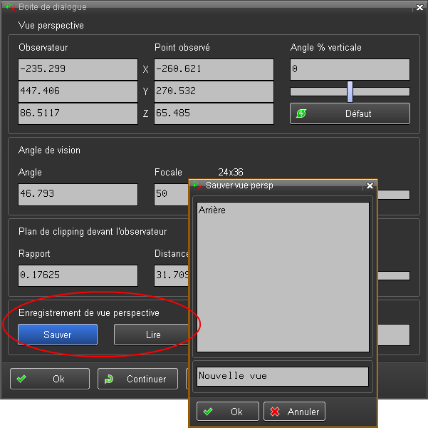 Permet de sauver les paramètres courants d'une vue perspective, en lui attribuant un nom.