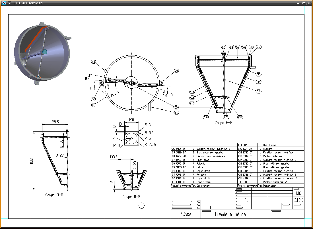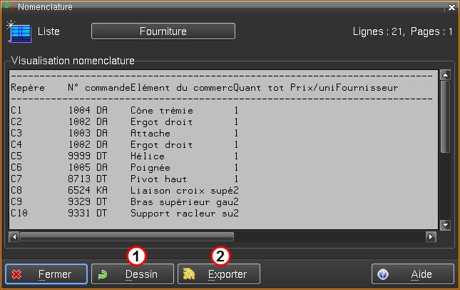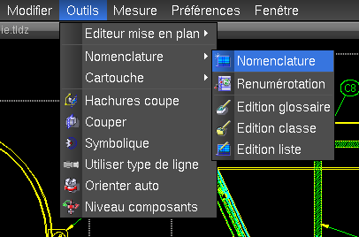 La nomenclature générée se présente de manière interactive. Le curseur permet de la positionner à l'endroit choisi.
