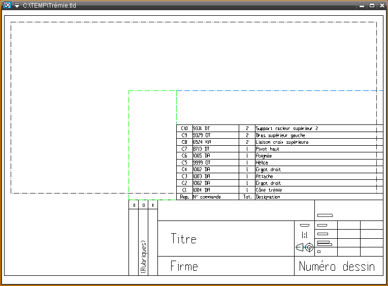 Les feuilles sont normalement dotées de zones rectangulaires indiquant la position des listes de nomenclatures.