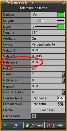 Plusieurs références Pour tenir compte de plusieurs références dans le cadre de tolérance il suffit, après avoir lancé la fonction avec SELECT sur la première référence, de cliquer sur une deuxième référence avec ENTER et ainsi de suite pour additionner les lettres de référence.