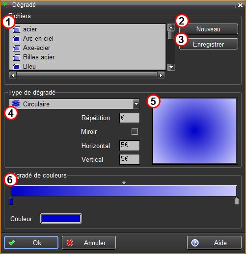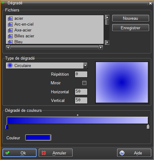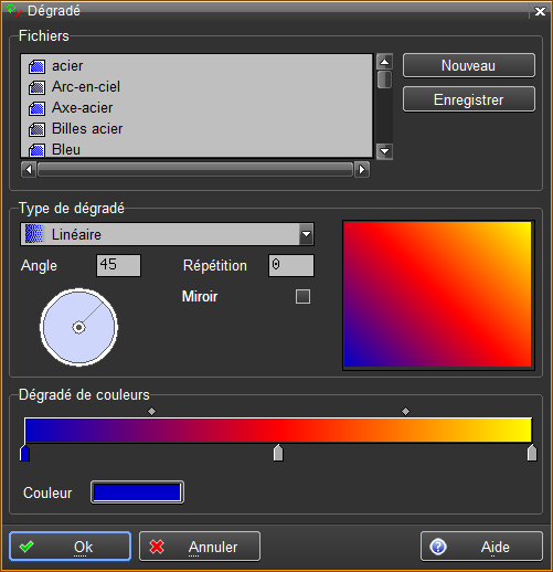 Création en enregistrement d'un nouveau dégradé de couleurs avec la définition courante.