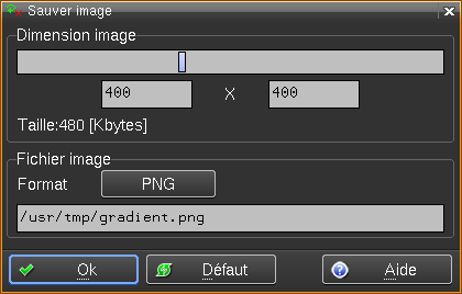 qui permet l'enregistrement de l'image bitmap du dégradé affiché.