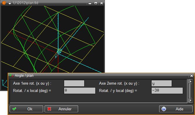 Permet de positionner le plan de travail en donnant les axes et les angles de rotation.