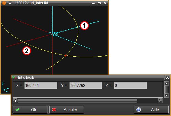 Permet de créer un points 3d à l'intersection de deux courbes 3d.
