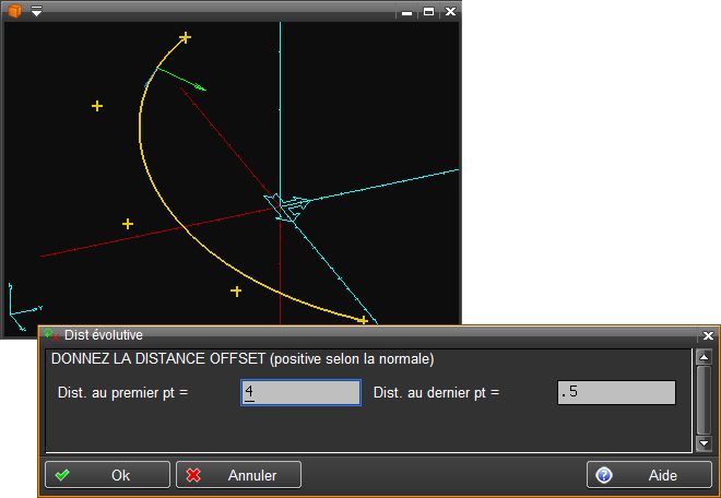 Cette fonction permet de générer une courbe parallèle à une autre en donnant une distance évolutive entre les courbes.