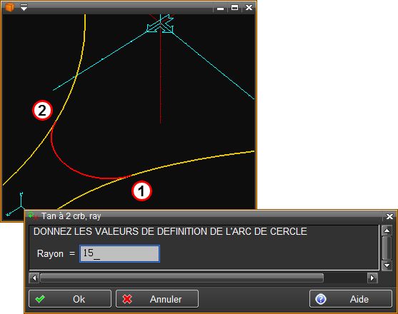 Création d'un arc de cercle tangent à deux courbes en entrant la valeur du rayon.