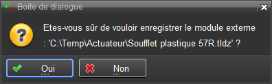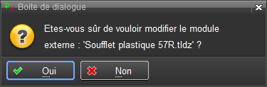 Au lancement de l'Edition d'un module, un message d'information demande confirmation: "Êtes-vous sur de vouloir modifier le module externe?"