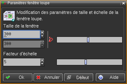 Cette fonction permet de modifier la taille et l'échelle de la fenêtre loupe.