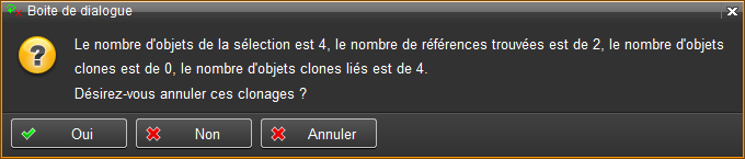 Si l'utilisateur sélectionne l'annulation des clonages, tous les objets de la sélection sont indépendants.