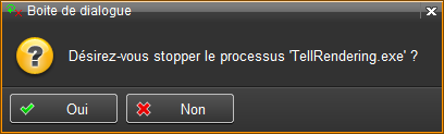 Si TellRendering est déjà en exécution le message suivant est affiché pour prévenir d'une perte éventuelle des modification apportées car, en cas de réponse positive, TellRendering est stoppé avant le transfert du dessin courant.