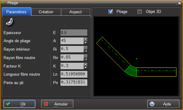 Permet de plier une plaque formée de deux faces planes parallèles. C'est un « pli défini à plat ».