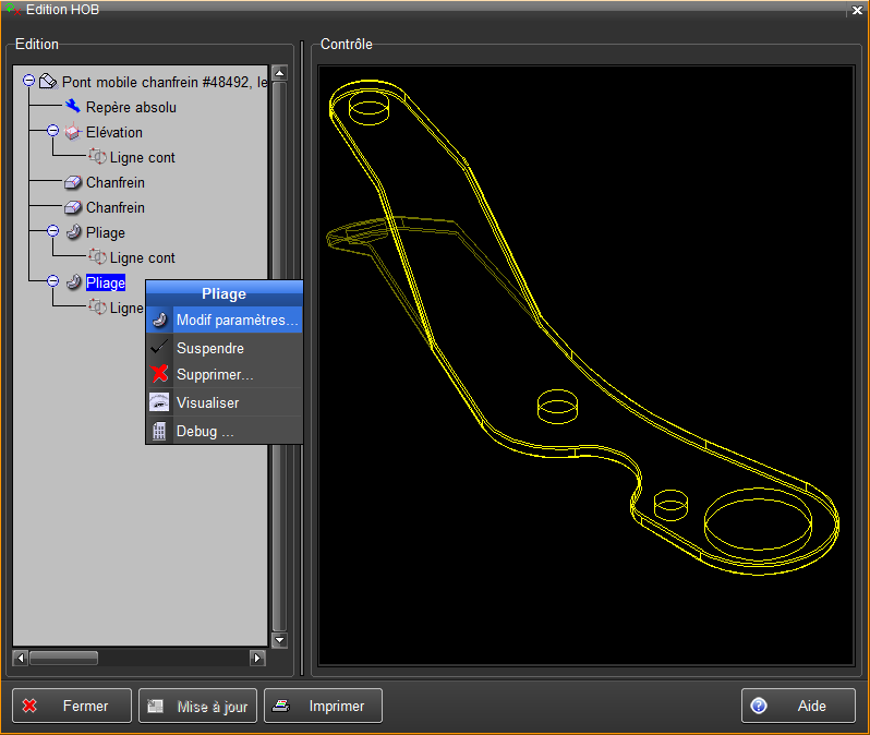 •Le pli est sauvé comme une fonction du HOB . •Ses paramètres principaux peuvent être modifiés. •La position de la ligne de pli peut être modifiée. |