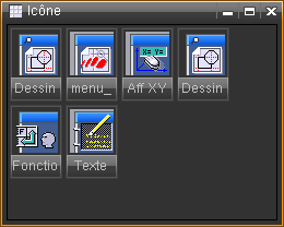 Une fenêtre de type Box à icones permet de recuperer les fenêtres que l'on a mis en icone dans un espace de travail.