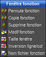 Ce chapitre regroupe des fonctions de traitement de la fenêtre des fonctions. Cette fenêtre peut être verticale ou horizontale et avec les nombres de lignes et colonnes modifiables par l'utilisateur.