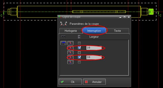 Habillage de zones vue multiples Textes Certains textes sont générés par le système : titre de zone vue générée par une ligne de coupe, labels des coudes d'une ligne de coupe. Ils peuvent être déplacé après coup (en particulier avec la fonction Haut<->bas).