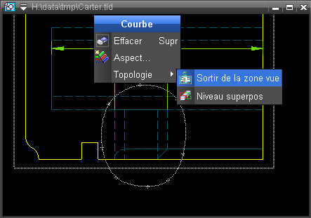 MISE EN PLAN Fonctions Mettre dans zone vue (2295) et Sortir de la zone vue (2297) Mettre dans zone vue (2295) permet de déplacer topologiquement des entités 2D de l'habillage de la mise en plan dans l'habillage d'une zone vue. Sortir de la zone vue (2297) permet le déplacement inverse. Visuellement, rien ne change. C'est l'imbrication des pièces qui est modifié. Ces fonctions sont accessibles dans le menu contextuel, sous "Topologie".