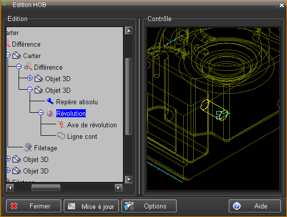 Interactivité et ergonomie en 3D Interactivité renforcée pour de nombreuses fonctions 3D. Voir ci-dessous Plan de travail , Curseur interactif 3D et Ergonomie de l'édition du HOB. Configuration Affichage z-buf (898) Le mode d'affichage 3d 'Affichage z-buf' est définissable dans les options graphique de l'utilisateur et enregistré avec ses valeurs par défaut.