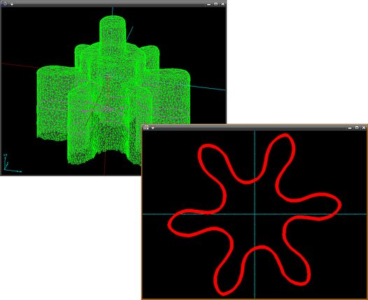 Voir les fonctions Edition maillage 3D, Facettes sur le même plan, Facettes sur la même surface Plan de travail sur maillage 3d Le plan de travail peut s'accrocher au repère associé à un maillage 3D . Ce plan peut être lié . Voir les fonctions Plan par objet et Plan interactif . Coupe d'un maillage 3d Coupe et génération du plan de coupe d'un maillage 3d.