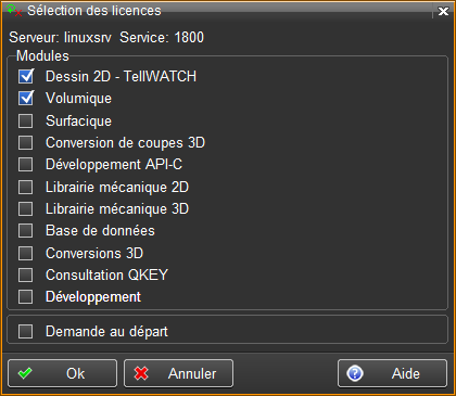 Système Extension unique Ce flag permet de forcer une extension unique lors de l'enregistrement d'un fichier de dessin ou paramétré. Si le flag est activé il n'est plus possible d'avoir des fichiers de dessin ou paramétré avec des extensions associées. Par exemple si l'on enregistre un dessin avec une extension .tldz et que le même nom de fichier avec une extension .tld existe, le fichier avec l'extension .tld sera remplacé par le nouveau dessin avec l'extension .tldz. Voir la fonction Extension unique on/off . Modification des licences de l'utilisateur Cette fonction permet de modifier les licences demandées au serveur de licences pour l'utilisateur.