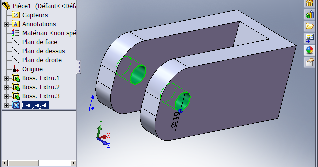 Traitement de la fonction "Perçage simple" dans la lecture des objets SolidWorks vers Tell .