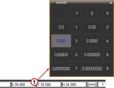 Voir la fonction Mode lecture anciens dessins Interface Arrondi d'affichage des coordonnées La touche 'Modif' de la souris sur la zone d'affichage des coordonnées du curseur permet d'accéder directement à la fonction de modification de l'arrondi d'affichage des coordonnées du curseur.