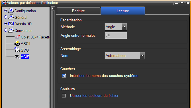 Voir fonction Renomme tout 3d . Refacettisation objets (2309) Cette fonction permet maintenant de refacettiser aussi les objets 3d lus avec le modeler ACIS; voir Conversion 3D/Import 3D .