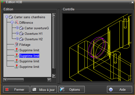 Voir la fonction Refacettisation objets . HOB Supprime limit (957) La fonction Supprime limitation a été ajoutée à l'historique de construction (HOB).
