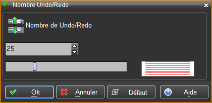 Voir les options d'affichage du curseur . Icône de la fonction 'Modif' Une nouvelle option permet d'associer une marque sur les fonctions ayant des options de fonctionnement. Par l'activation de la fonction 'Modif' ou lorsque le curseur est sur la marque de la fonction, les options de fonctionnement sont activées et il est possible de les modifier. Par exemple pour la fonction Liste Undo/Redo, la sélection sur l'icône 'Modif' permet de modifier les paramètres de fonctionnement des fonctions Undo/Redo.
