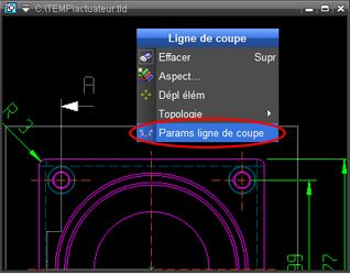 MISE EN PLAN Accélération de l'affichage L'affichage des objets dans les zones vue est considérablement accéléré car il utilise désormais la puissance des cartes graphiques. Génération automatiques des traits d'axes Les traits d'axes superposés sont désormais évités lors de la création automatique quand une nouvelle mise en plan est créée avec plusieurs objets. Paramètres ligne de coupe (2382) Cette nouvelle fonction permet un accès facilité aux paramètres d'une ligne de coupe en mode mise en plan. Elle est accessible via le menu contextuel, quand la ligne de coupe est sélectionnée.