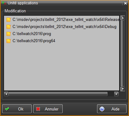 Voir la fonction Décodage vidéo . Répertoire des applications Cette fonction permet de modifier le ou les répertoires contenant les applications utilisées par Tell. Elle permet également de contrôler les applications installées.