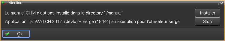 Voir la fonction Options de l'utilisateur . Affichage des messages d'attention (573) Affichage des messages d'attention et éventuellement d'une mise à jour disponible. Ces informations sont affichées automatiquement au lancement de Tell si le démarrage de l'application n'est pas automatique.