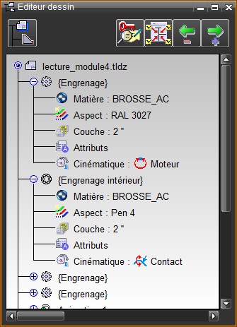 Type raccord forcé ou non La fonction Type raccord permet de renoncer au type « raccord » de certaines faces construites par Chanfrein ou Raccord , ou héritées des fonctions Elévation face , Révolution face , Hélicoïdal face ou Pliage . Elle permet à l'inverse de forcer ce type sur des faces construites autrement ou résultant d'importations. L'objectif étant de suivre - ou non - les préférences d'affichage définies dans Arêtes des raccords . Enregistrement des lumières avec le dessin Cette fonction permet de forcer l'enregistrement des lumières configurées avec le dessin. Voir la fonction Enreg. lumières avec dessin. Enregistrement des paramètres d'affichage 3d avec le dessin Cette fonction permet de forcer l'enregistrement des paramètres d'affichage (texture d'environnement, paramètres de la vue de travail et des différentes vue éclairées) des différentes vues 3d avec le dessin. Voir la fonction Enreg. param. affichage 3d avec dessin. La fonction Trace faces sur plan on/off permet d'afficher les faces des objets 3D qui sont coplanaires avec le plan de travail courant, dans les fenêtres 2D, sous forme de traitillés. Cette fonctionnalité était jusqu'ici toujours activée, désormais ce ne sera plus le cas. Lecture et enregistrement au format Collada Voir les fonctions Collada CONVERSION KML - KMZ Lecture et enregistrement au format Keyhole Markup Language Voir les fonctions Keyhole Markup Language CONVERSION SolidWorks Programme additionnel pour SolidWorks L'utilisation du programme additionnel pour SolidWorks permet d'optimiser les performances du transfert SolidWorks <-> Tell. Voir Programme additionnel pour SolidWorks. CONVERSION DWG/DXF Lecture de l'entité MLINE de DWG/DXF.