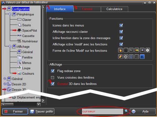Options de l'utilisateur Une fonction de recherche a été implémentée dans les options de l'utilisateur.