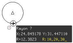 Interface Affichage du curseur Des options ont été ajoutées lors de l'affichage du curseur. Il est possible d'afficher l'icône de la fonction avec le curseur ainsi que le message de la fonction, les coordonnées X,Y et le paramètre dépendant de la fonction en cours.