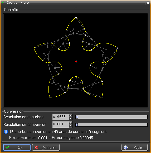 Voir la description des couches. 2D Conversion interactive courbes -> arcs (2431) Conversion interactive de courbes en arcs de cercle avec la modification de la résolution un contrôle graphique de la conversion.