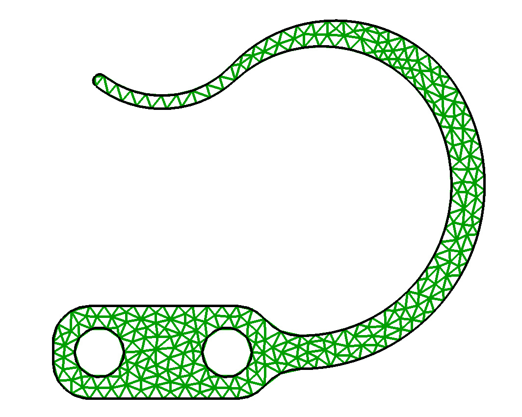 FEM Eléments finis 2d Il est maintenant possible de générer un maillage 2d sur un contour, puis de fixer des nœuds et appliquer des contraintes ou des déformations pour un calcul par éléments finis linéaire ou non linéaire.