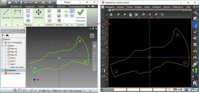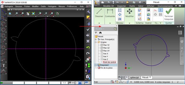 CONVERSION DIRECTE Inventor Import d'une esquisse Inventor Il est possible d'importer une esquisse Inventor dans Tell, voir la fonction Inventor->Contour 2d.