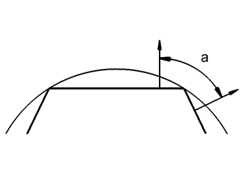 - Angle : facettisation en spécifiant un angle maximal entre les normales de deux facettes adjacentes. Cette facettisation est indépendante de la taille de l'objet. L'angle maximal doit être entré au point 2.