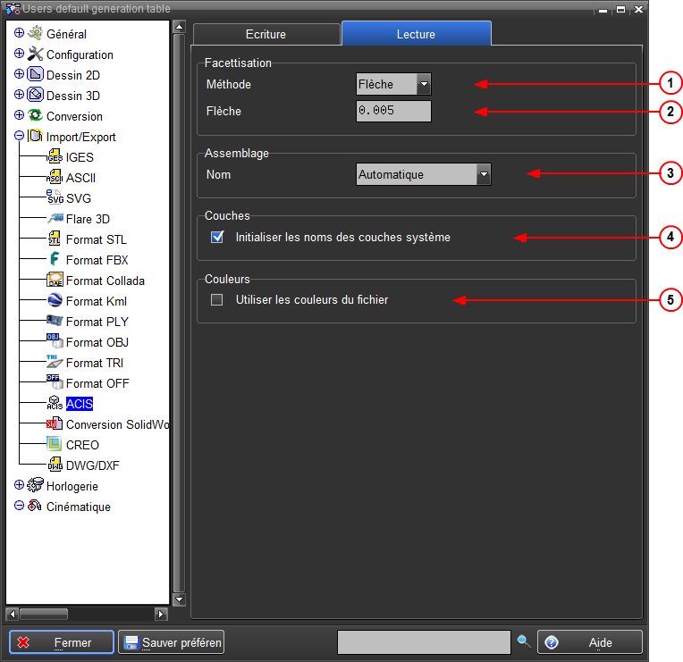 5.Si l'option est activée, les couleurs des objets lus seront respectées par addition s'il y a besoin de couleurs aux couleurs existantes du système.