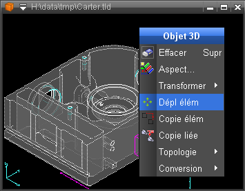 4.Le plan de travail est modifié (remis à XY) 5.Activation de Déplace élément par le menu contextuel de l'objet porteur |