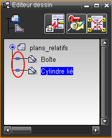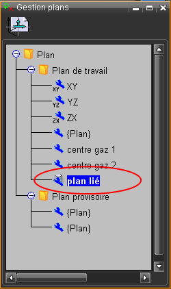 Un plan lié est affiché avec une icone particulière dans la fenêtre de gestion des plans.
