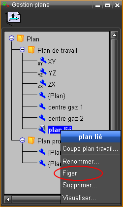 Le menu contextuel permet de « figer » ce plan (supprimer son lien avec un objet du dessin).