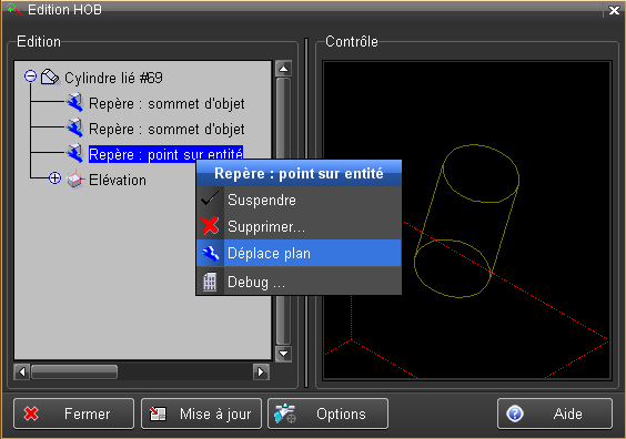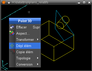 Le menu contextuel de ce repère relatif propose la fonctionnalité "Déplace plan".