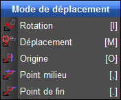 Après avoir tapé sur la touche [I], les entités en déplacement sont positionnées à l'origine et la rotation est interactive.
