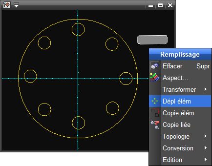 Le remplissage est placé au centre en direction du cercle sélectionné.