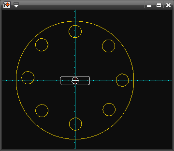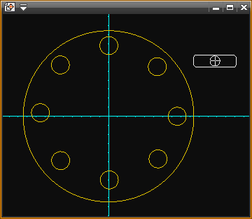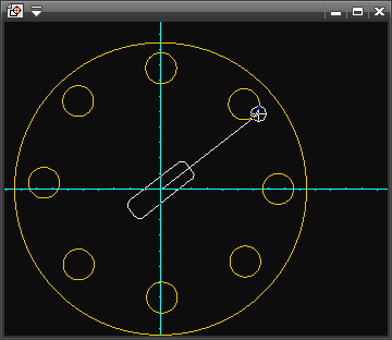 3.Touche [M] : le prochain clic ne sera pas la fin du déplacement, mais l'origine d'un déplacement relatif. Cette position sera « mémorisée ». 4.Touche [,] : point milieu. 5.Premier clic, sur le cercle : le curseur se déplace au centre (effet de la touche [,]). 6.Le système se met en attente des déplacements relatifs donnés au clavier (effet de la touche [M]) : déplacement du curseur par le clavier. |